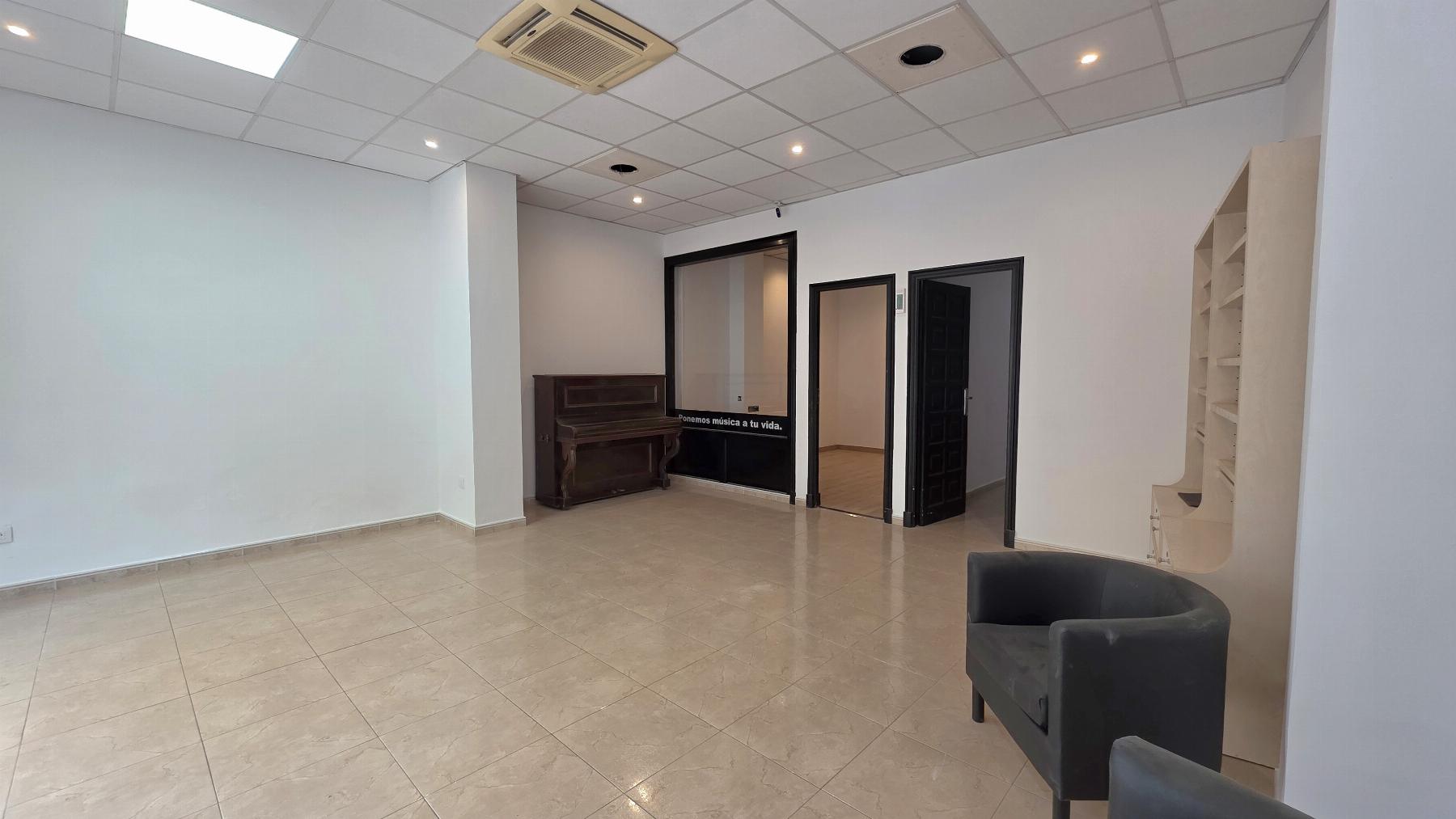 En la parte posterior encontrarás una trastienda con un gran armario empotrado y un cuarto de baño, actualmente sin sanitario pero con todas las tomas preparadas para habilitarlo fácilmente. El local incluye, además, un cuarto trastero adicional.