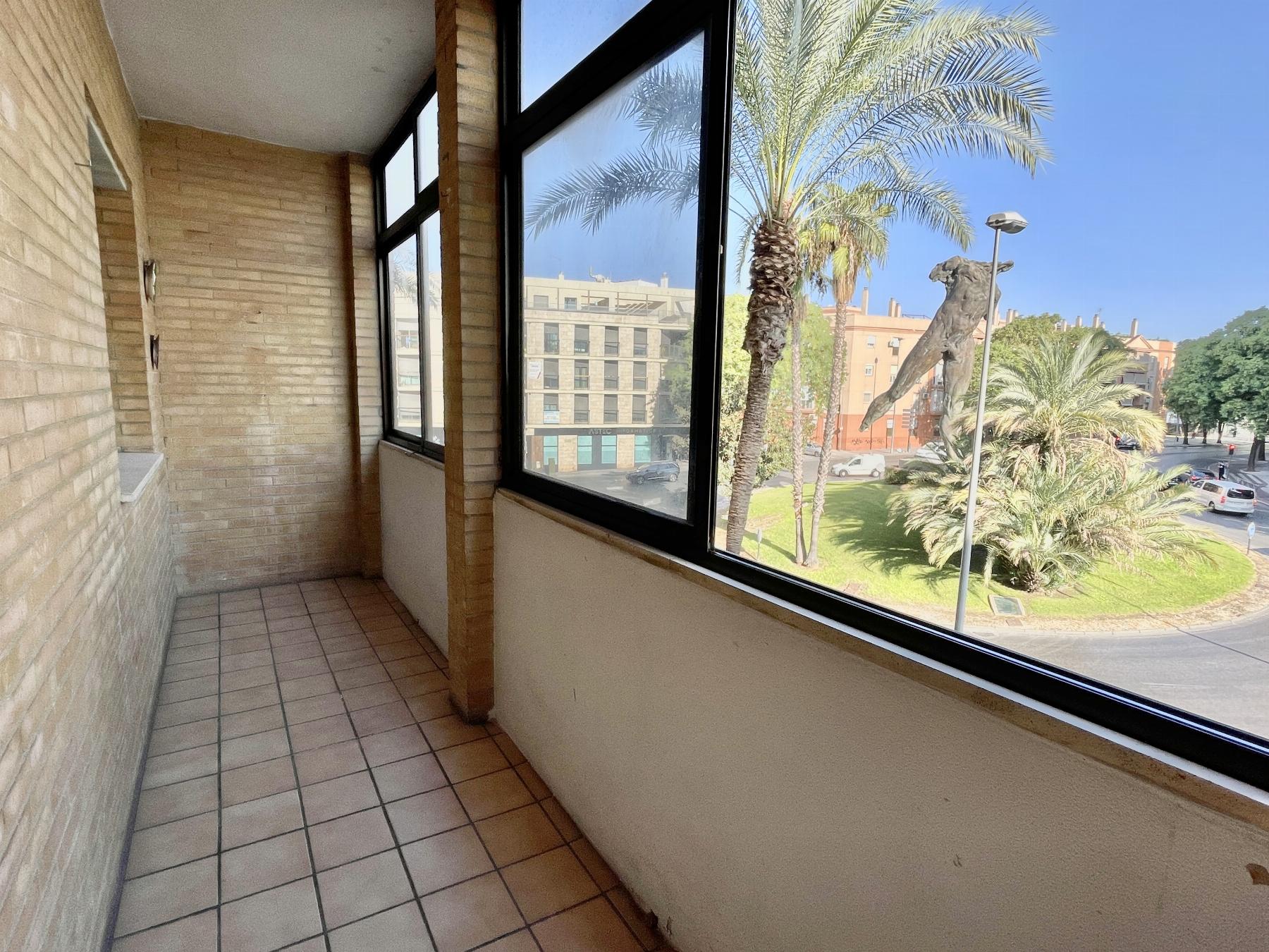 El salón es amplio y muy luminoso, con ventana al exterior y salida a una agradable terraza acristalada desde la que se disfrutan vistas a la conocida rotonda del Minotauro. Dispone de dos dormitorios, destacando el principal por sus grandes armarios empotrados de pared a pared, con seis puertas y gran capacidad de almacenaje. El baño, con bañera y ventana al exterior, aporta luz y ventilación natural.