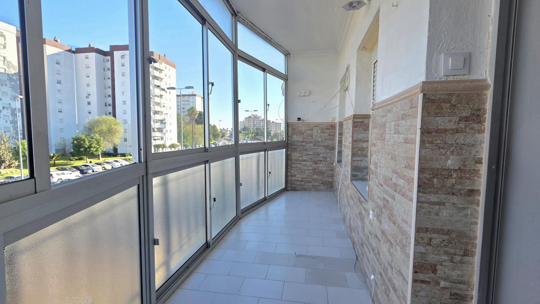 La vivienda dispone de salón-comedor con acceso a terraza acristalada, cocina sin amueblar con zona de lavadero, baño completo con placa de ducha y tres dormitorios (uno de ellos con armario empotrado), además de armario adicional en el pasillo.